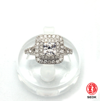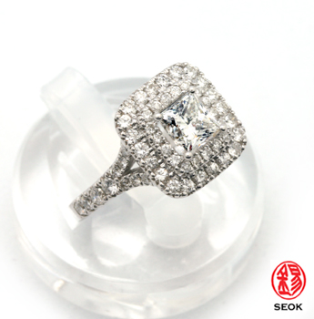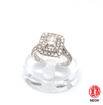 R-285 1.02ct 사각다이아몬드가 세팅되어있으며 멜레다이아몬드가 60개가 세팅되어있어 화려한 디자인의 반지입니다.